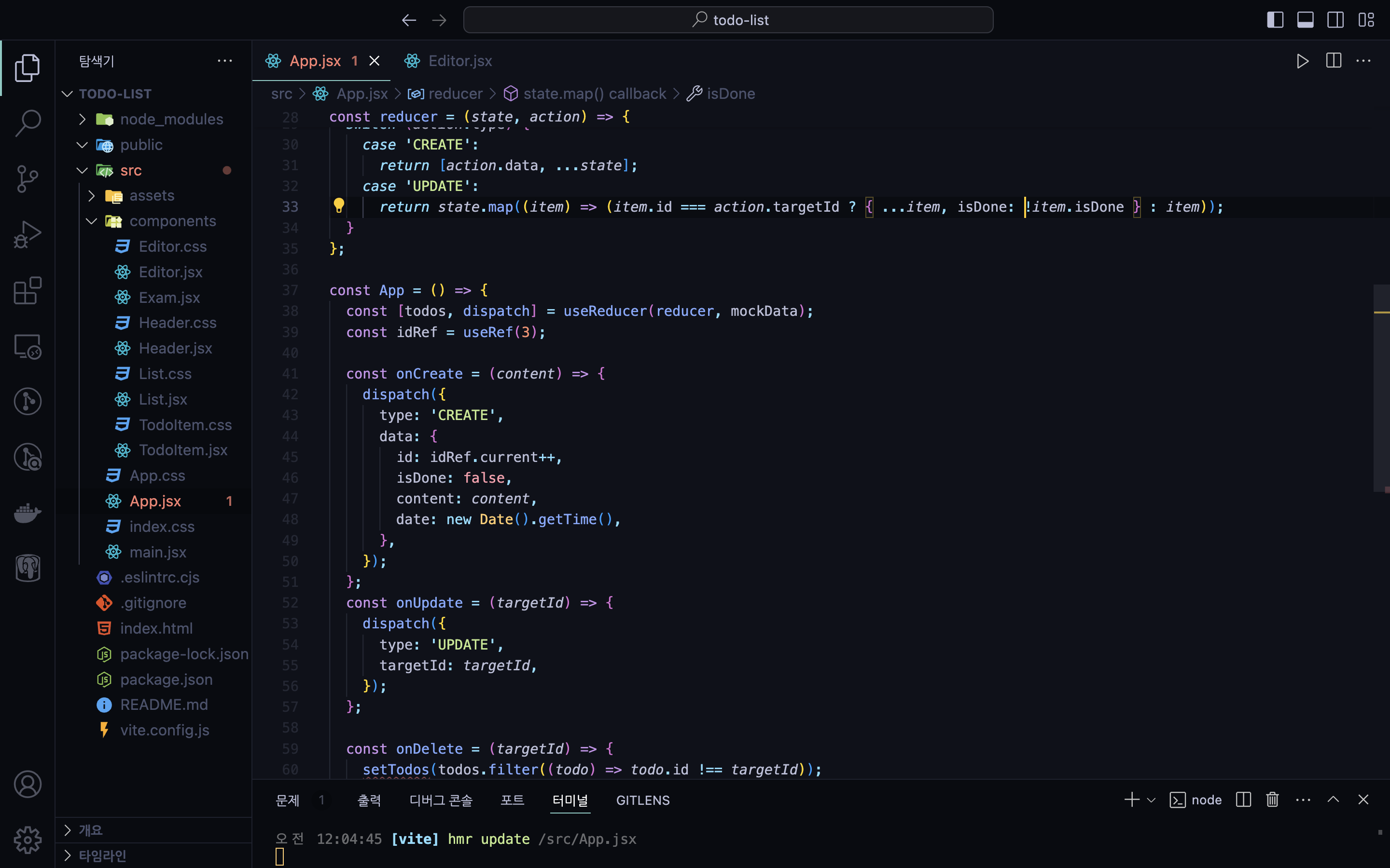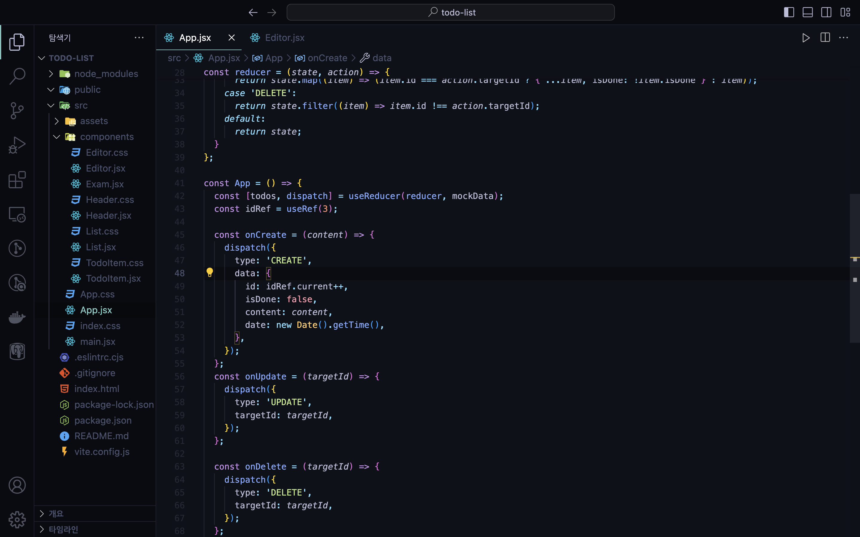 기존의 상태 관리 함수 onCreate, onUpdate, onDelete를 useReducer를 통해 refactoring 해본다.