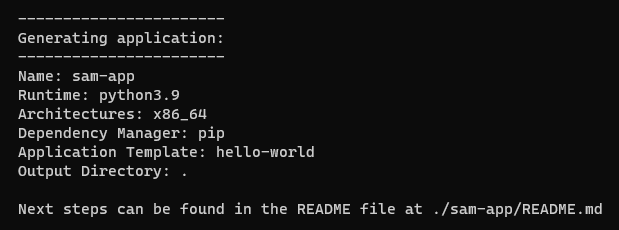 template.yaml 먼저 샘플 애플리케이션용 파일이 있는 프로젝트 디렉토리로 변경합니다 . (기본적으로 이 디렉터리는 sam-app입니다.) 그런 다음 다음 명령을 실행합니다.