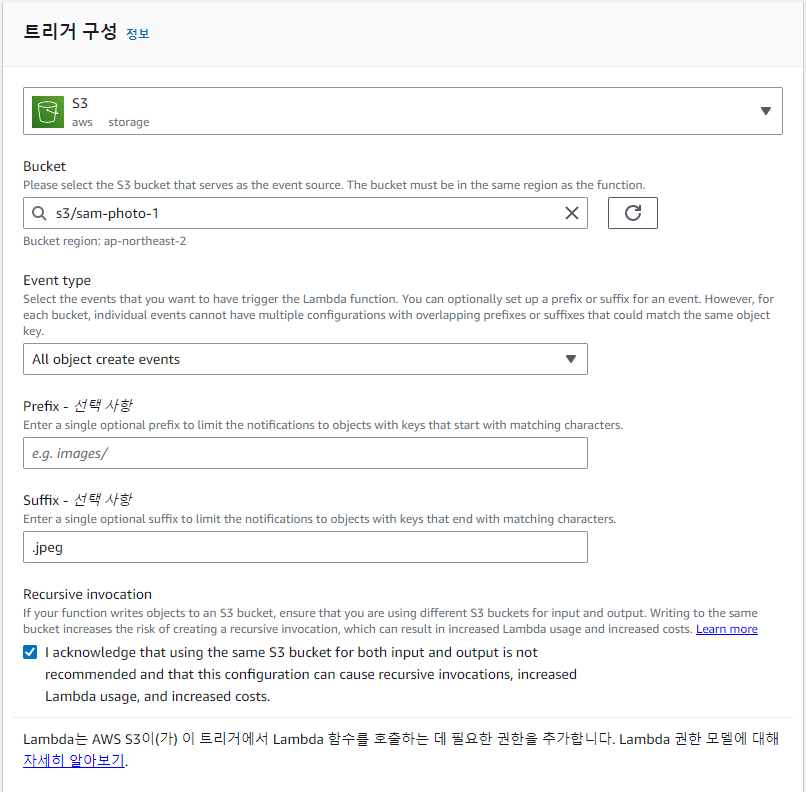 S3 버킷을 하나 만들고, 트리거로 연결합니다.