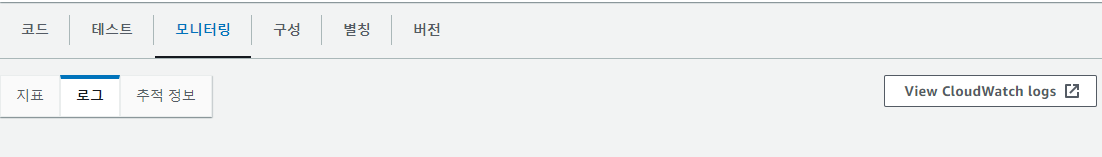 event와 context가 어떻게 콘솔에 출력되는지 확인하기 위해 "모니터링" 탭의 "CloudWatch에서 로그 보기"를 클릭하여 로그를 확인합니다.