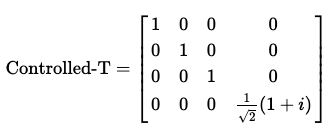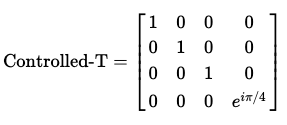 Controlled-T 게이트의 행렬은 다음과 같이 나타낼 수 있다.
