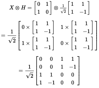 크로네커 곱을 사용해서 다중 큐비트 상태 벡터를 연산한 것처럼, 텐서 곱을 사용해서 이러한 상태벡터에 작용하는 행렬들을 계산하면 된다.