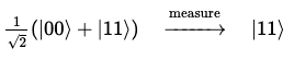 예를 들어, 최상위 큐비트를 측정하고 |1>의 상태를 얻었다면, 큐비트의 집합적 상태는 다음과 같이 변경된다.