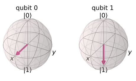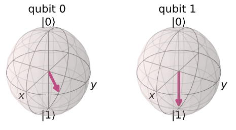 앞전 챕터에서의 블로흐 구에 대한 정의를 고려할 때, Qiskit이 이러한 얽힌 큐비트를 블로흐 벡터로 계산하는 방식이 명확하지 않을 수 있다.