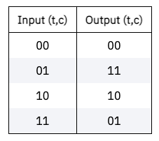 큐비트가 중첩되지 않은 경우(고전 비트처럼), 진리표를 통해 다음과 같이 나타낼 수 있다.