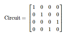 해당 행렬은 우리 상태 벡터의 |01>과 |11>의 진폭을 교환한다.