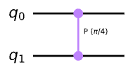 qc.cp(pi/4, 0, 1)