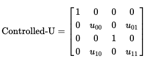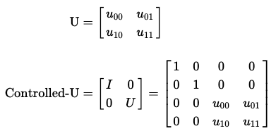 보다 일반적으로, 다음의 규칙을 적용하여 어떠한 controlled-U 연산에 대한 행렬을 찾을 수 있다.