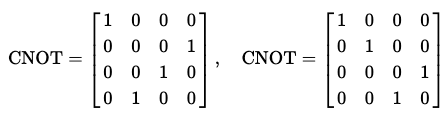 책, 시뮬레이터, 논문마다 상이하며, Qiskit의 경우 좌측의 행렬이 CNOT 회로이다.