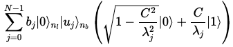 의 고유 기저로 표현되는 레지스터의 양자 상태는 다음과 같아진다.