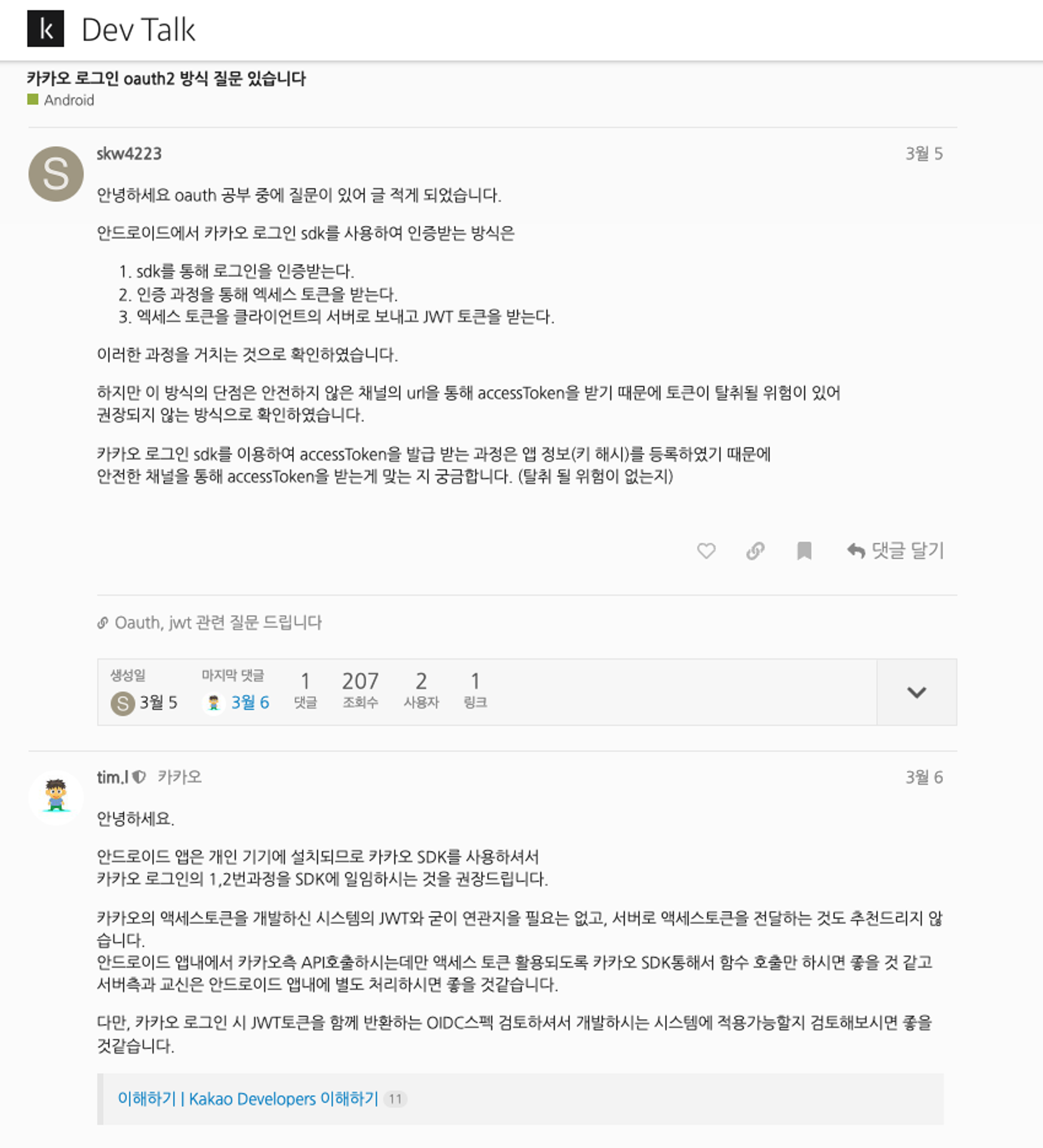 하지만 앱과의 Oauth2는 웹과의 Oauth2 로그인과 달리 고려할 것이 있었다. 바로 리소스 서버에서 지원해주는 SDK의 사용 여부였다.