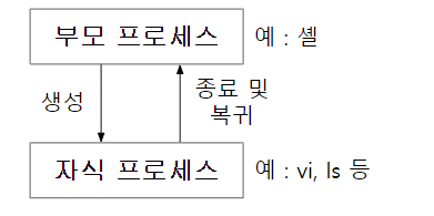 프로세스는 부모-자식 관계를 가지고 있는데, 필요에 따라 부모 프로세스 (Parent Process)는 자식 프로세스(Child Process)를 생성하고 자식 프로세스는 또 다른 자식 프로세스를 생성 가능하다.