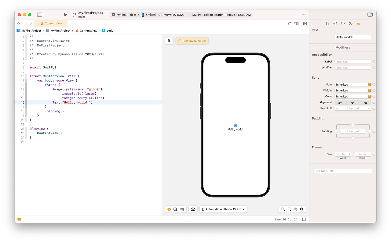 프로젝트에 사용되는 소스나 리소스, 프레임워크들을 확인여기서의 어떤 파일을 선택에 따라서 중앙 편집기와 우측의 유틸리티 내비게이터가 달라지죠
