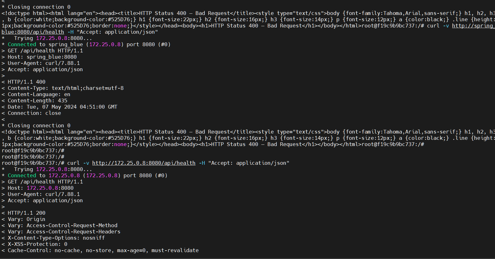 헬스 체크시 젠킨스 내부에서 동일 네트워크내 Spring 컨테이너로 Health check 시에 해당 DNS 이름을 인식하지 못하는 문제였다.