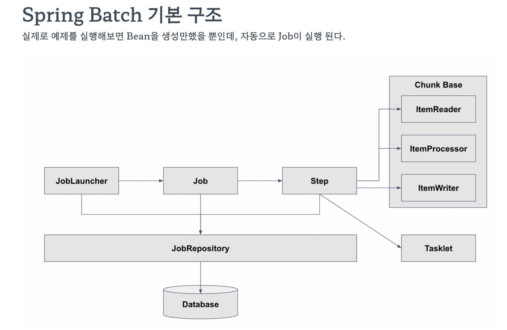 해당 사진을 보면 Spring Batch의 구조를 확인할수 있다.