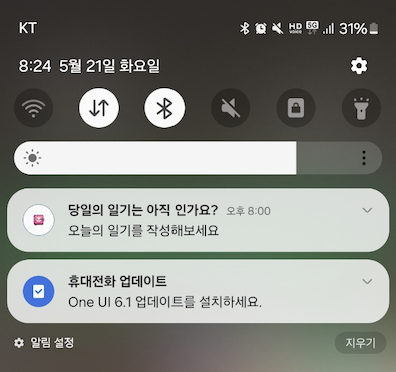 이후 일기를 작성하지 않았고, 오후 8시에 해당 알림을 받는것을 확인했다.