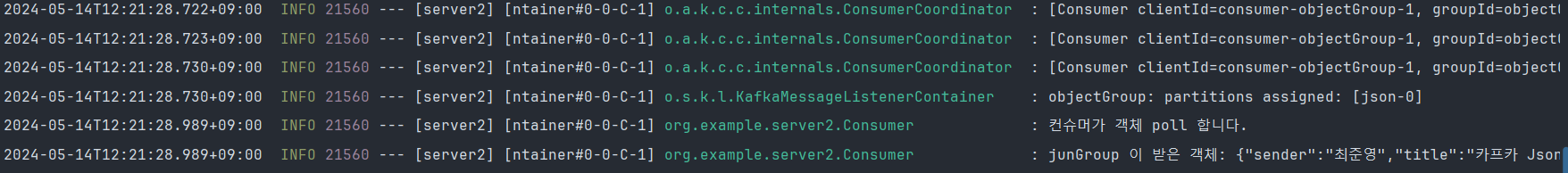 @KafkaListener(topics = "json", groupId = "objectGroup")