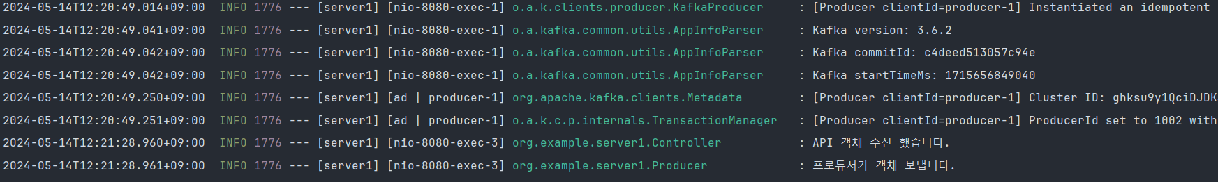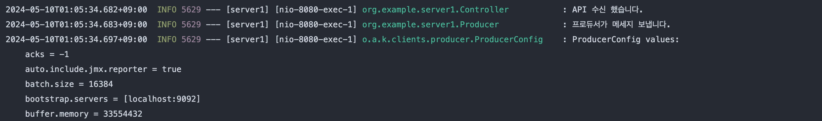 이처럼 카프카를 사용해 메세지를 주고 받았다.