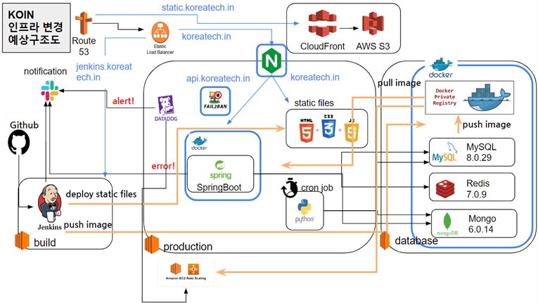 올해초 2년간 작업을 한 Koin_Renewal_Deploy에서 무중단배포, 그리고 추후의 Auto-Scaling을 위해 DB/WAS의 분리가 필요했다.