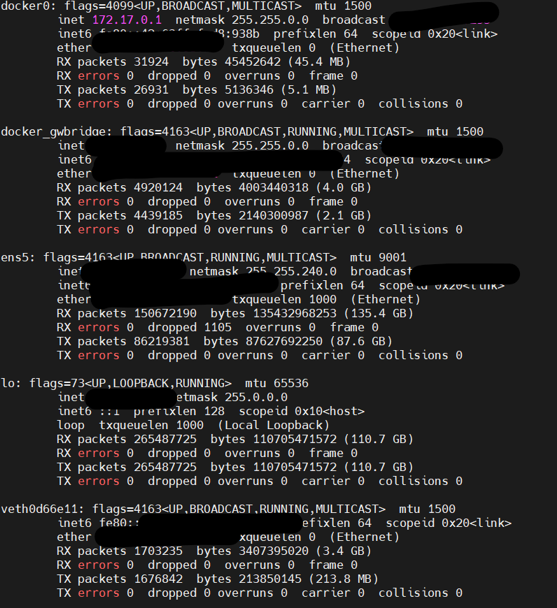 ifconfig를 통해 네트워크 인터페이스를 확인하면 다음과 같은 결과가 나오는 것을 볼 수 있다.