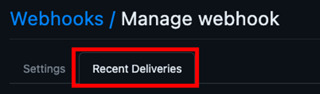 Add webhook을 한 뒤 다시 등록한 웹 훅을 클릭하여 Recent Deliveries 탭을 확인해 본다.