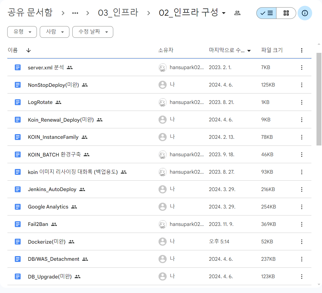 기존에도 구글 드라이브에 문서화를 잘 시켜놓았다.