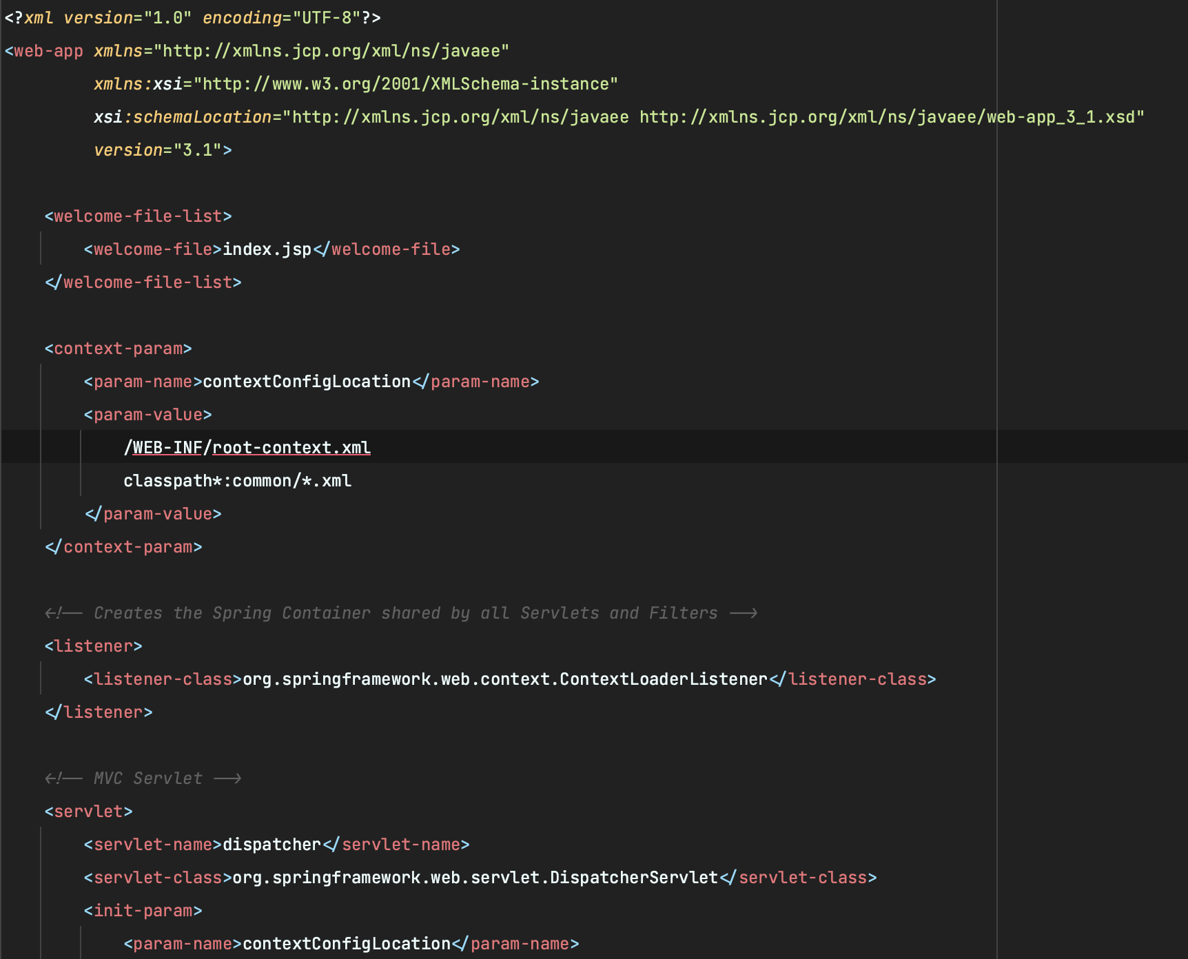 servlet-contect.xml, web.xml, root-contect.xml등 spring과 관련된 다양한 설정들이 xml로 수동으로 관리되고 있다.