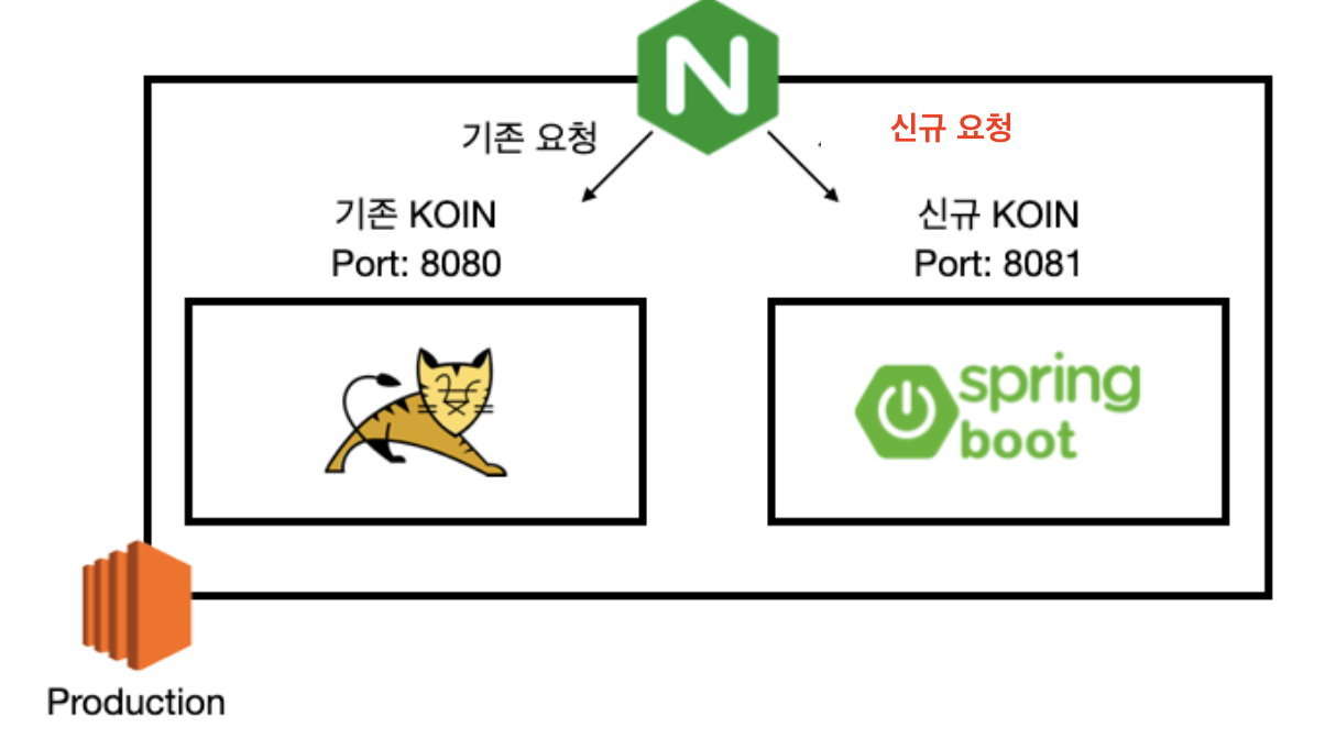 하나의 인스턴스에서 두개의 WAS를 띄워 nginx path를 바꿔 진행하기로 하였다. ELB에서 두개를 띄우는 방안도 존재하겠지만 서버비를 절약하기위해 위와같이 하기로 결정을 하였다.