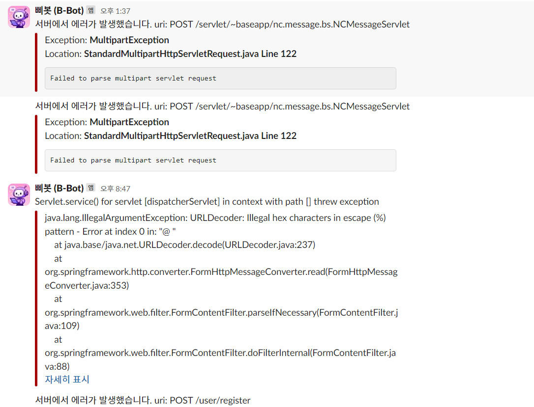 이러한 에러는 원래 로그가 나오면 위의 에러페이지에 나오면 안되지만 원가 체크해야 할 것이 있다고 생각했다.