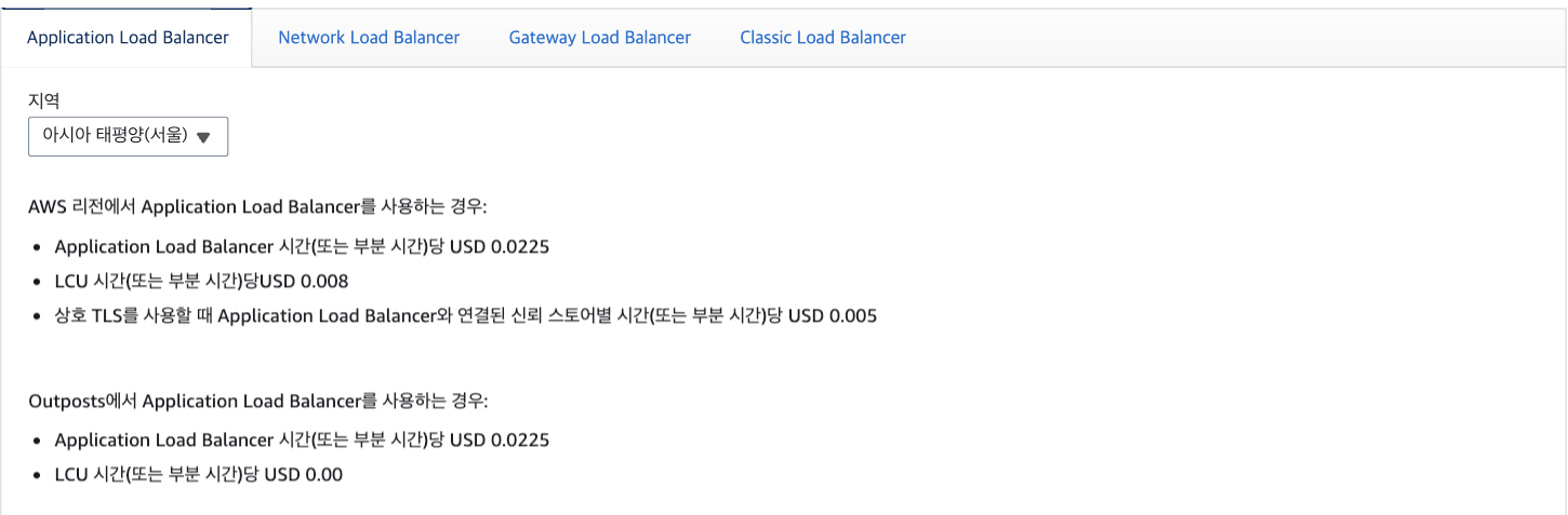 ELB요금표를 확인해보면 시간당 0.0225달러이다. 온보딩을 받을때와 온보딩을 할때도 ELB를 활용해 HTTP -> HTTPS리다이렉트를 위해 사용하였다.