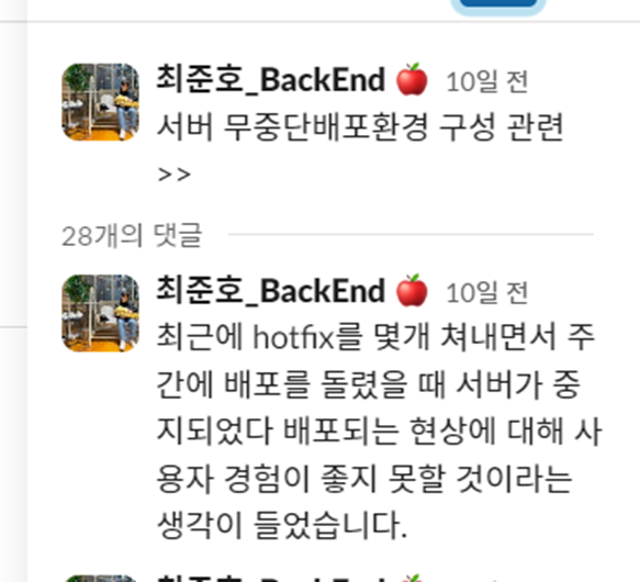 저번의 Renewal 배포 이후 무중단 배포의 중요성을 깨달았기 때문에 이번 무중단 배포에 대해 고민하게 되었다.