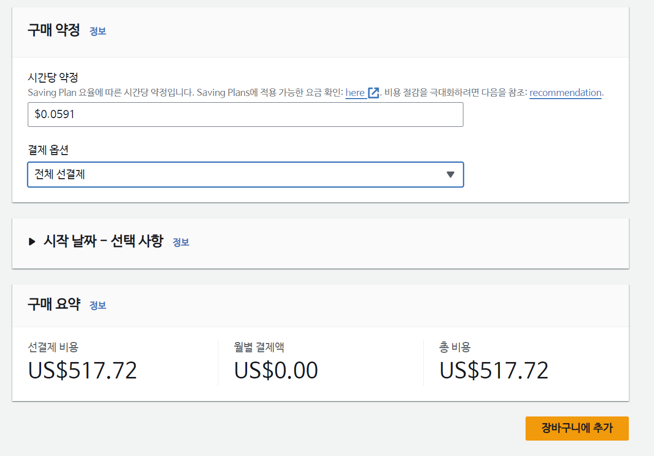 1.전체 선결제(All Upfront)-비용을 모두 선결제, 가장 저렴하다.