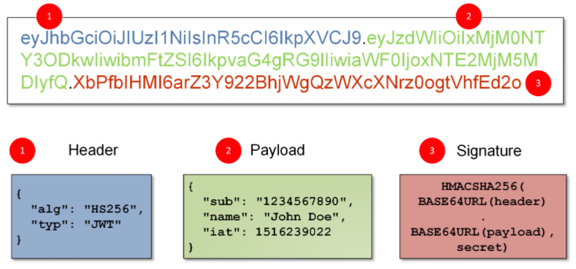 JWT는 JSON데이터를 Base64 URL-safe Encode를 통해 인코디아여 직렬화한 것이 포함되며 토큰 내부에는 위변조 방지를 위해 개인키를 통한 전자서명도 있다.