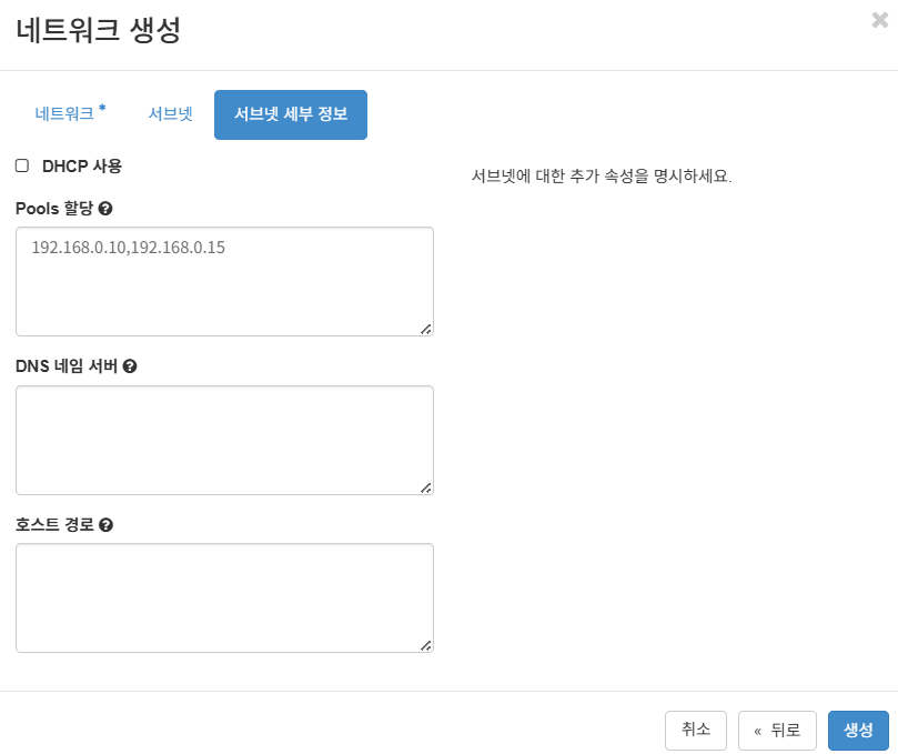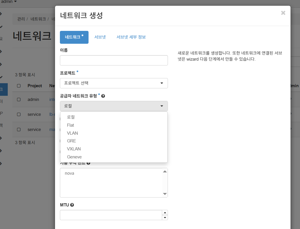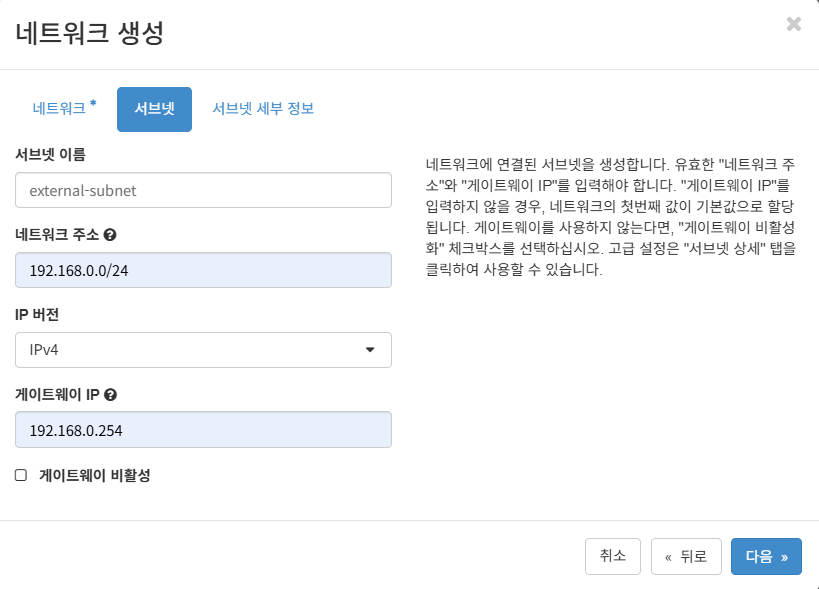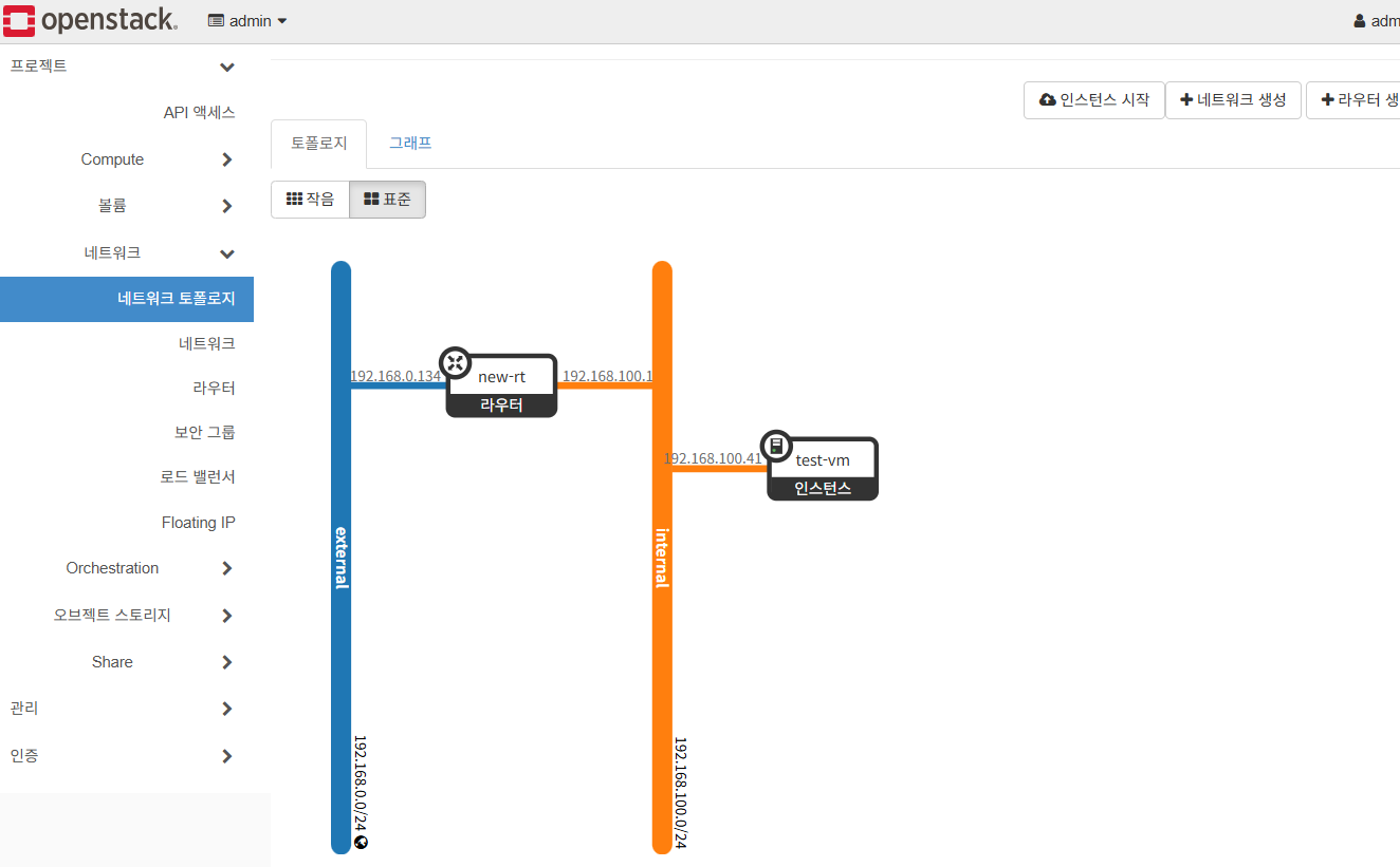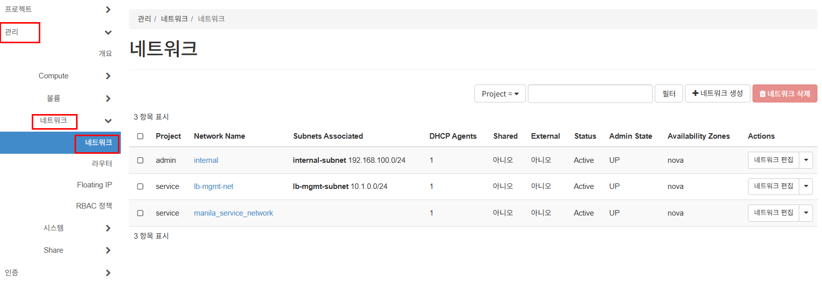 외부 내트워크는 관리자가 관리>네트워크>네트워크에서 설정.