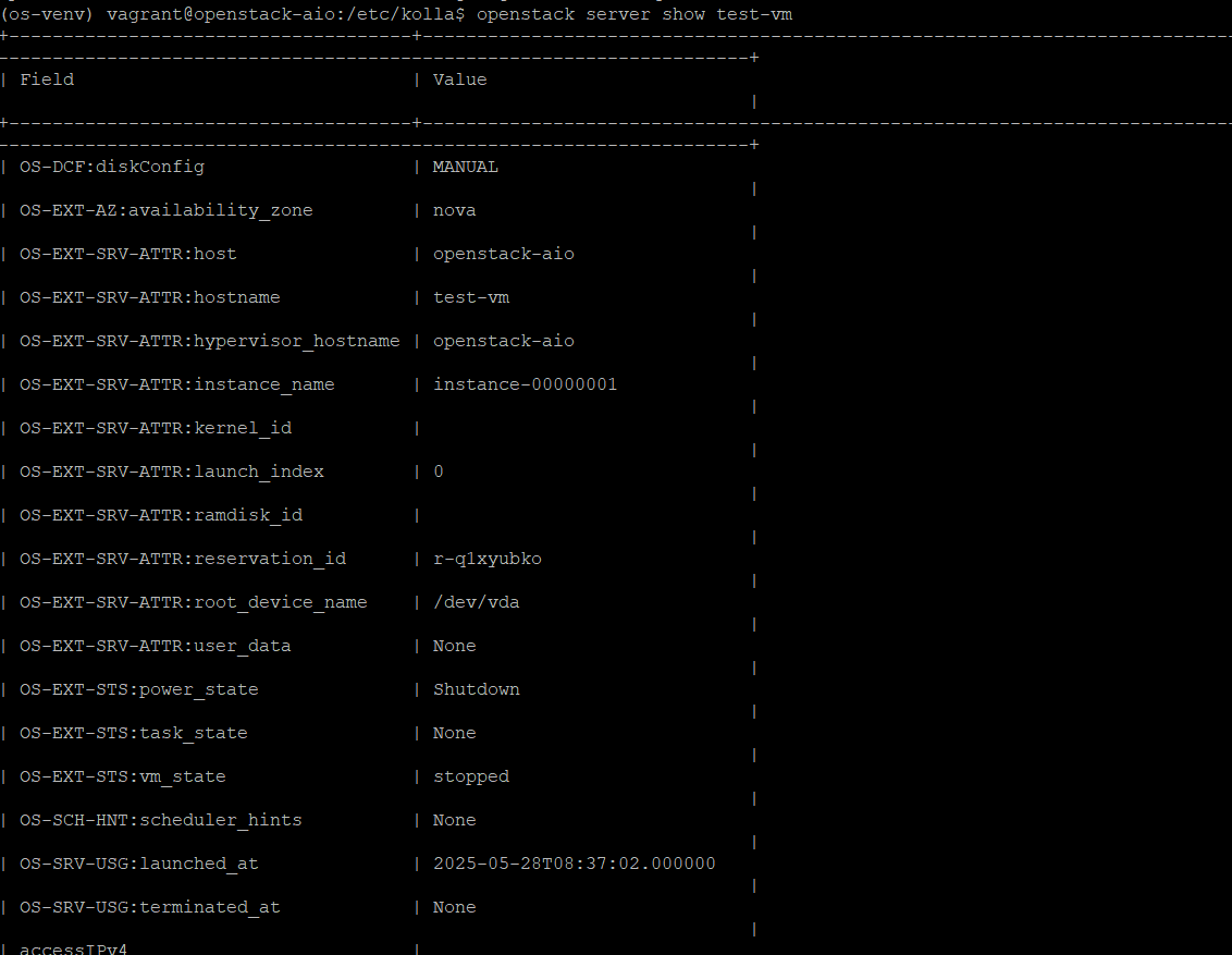 (os-venv) vagrant@openstack-aio:/etc/kolla$ openstack server create --key-name ^C