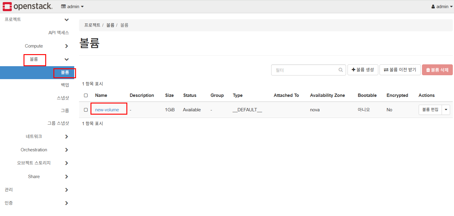 1) 블록 스토리지(Cinder 서비스로 관리)