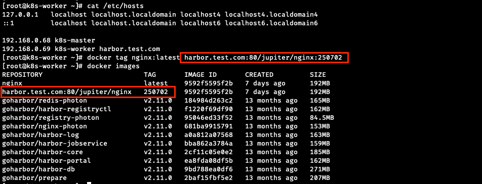 docker load -i nginx_250702.tardocker tag nginx:latest harbor.test.com:80/jupiter/nginx:250702[root@k8s-worker ~]# cat /etc/hosts