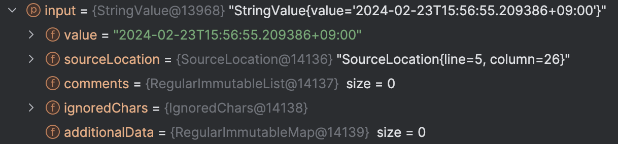 디버깅을 통해 문자열 요청 값은 StringValue 구현체를 통해 전달되고 있다는 것을 알아내었다.
