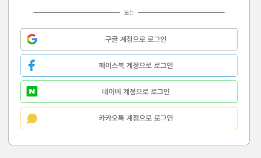 아이콘을 적용하기 위해 소셜 로그인 버튼들을 html로 작성을 해주었습니다.