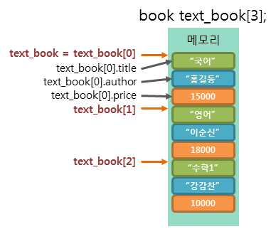 다음 그림은 위의 예제에서 사용된 구조체 배열의 메모리 상태를 보여준다.
