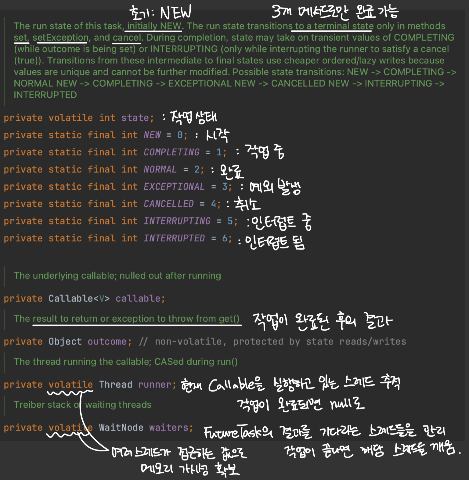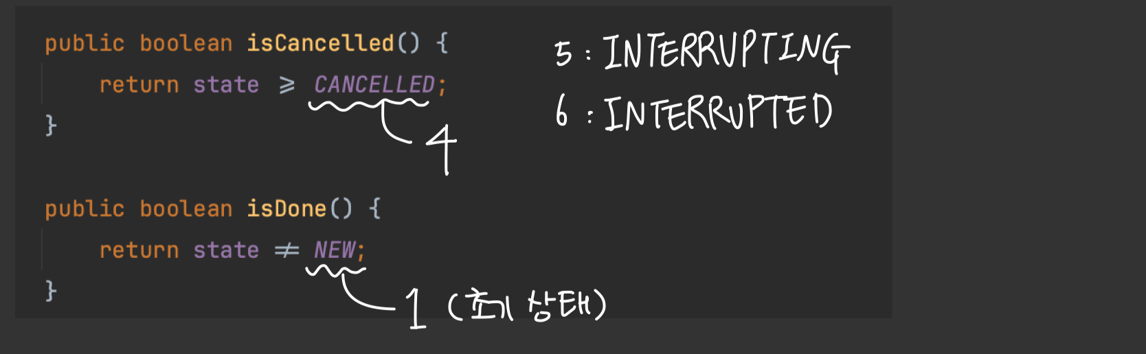 FutureTask가 가능한 상태 전환은 4가지입니다.