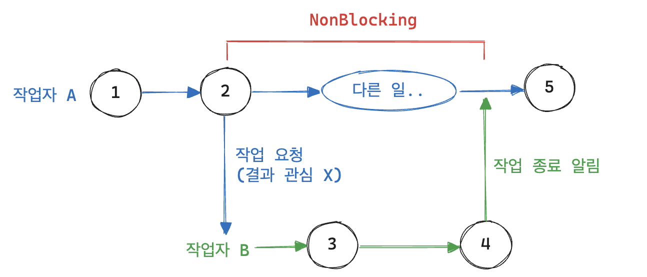 특정 작업이 진행 중일 때도 다른 작업이 계속 실행되므로 NonBlocking 특성을 가진다.