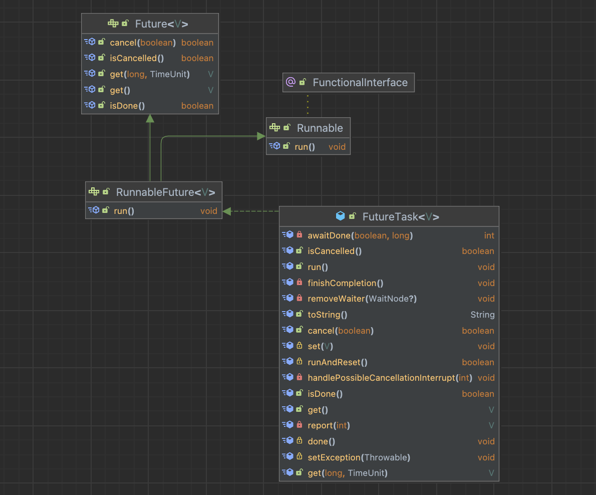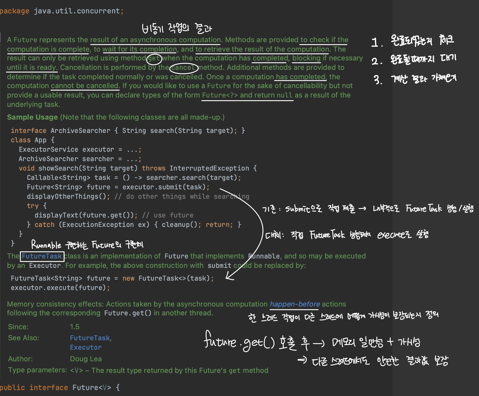 Future는 Java 비동기 프로그래밍에서 중요한 역할을 하는 인터페이스이므로 내부적으로 어떻게 작동하는지 자세하게 뜯어봅시다.