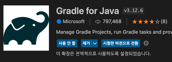 Maven 대신 Gradle을 사용할 거라면 이 확장팩을 설치해야한다. 아직 Maven이나 Gradle이 자세히 뭔지 몰라도 된다. 그냥 간단히 프로젝트를 관리해주는 도구 정도라고 알고 있자. 점프 투 스프링부트에서는 Gradle을 사용하니 이를 설치해준다.Maven과 Gradle은 빌드 관리 도구이다. 둘의 차이점은 분명 존재하지만 공통적으로 라이브러리와 프로젝트를 관리해준다. Gradle이 더 나중에 나온 것이며, 최근에는 Gradle로 많이 넘어오는 추세라고 한다. Maven은 자바용 프로젝트 관리 도구인 반면, Gradle은 자바, C/C++, Pythone 등을 지원한다. Maven에는 없지만, Gradle에는 Maven과의 비교 문서가 있다고 한다. 그만큼 자신있다는 입장인 듯 하다. 실제로 Gradle은 Maven보다 최대 100배 빠르다. Maven과 Gradle에 대한 더 자세한 설명은 이후 별도의 글에서 다루도록 하겠다.