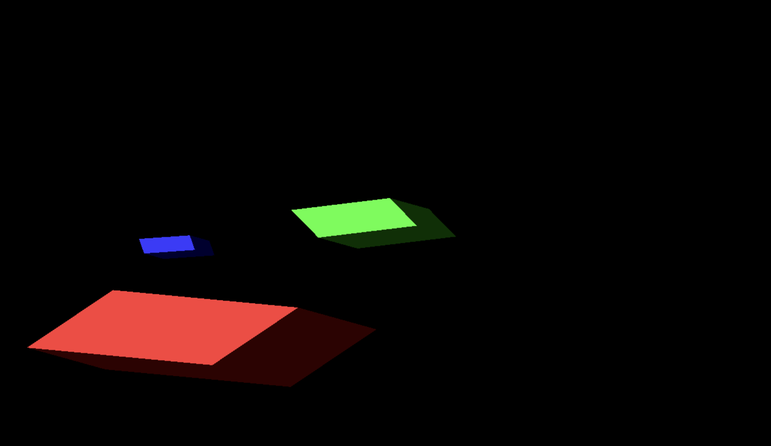 달라진 부분은 animate() 함수에 아래 부분이 추가됐다는 것이다. box2 의 center 를 world coordinate으로 변환한 후, 카메라가 그 좌표를 LookAt 하도록 했다. 따라서 애니매이션은 box2 가 중심에 있는 것처럼 보일 것이다. 또한 up-vector를 y축 방향으로 설정해주었다.