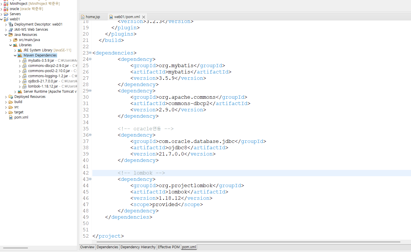 롬복, 오라클, 마이바티스