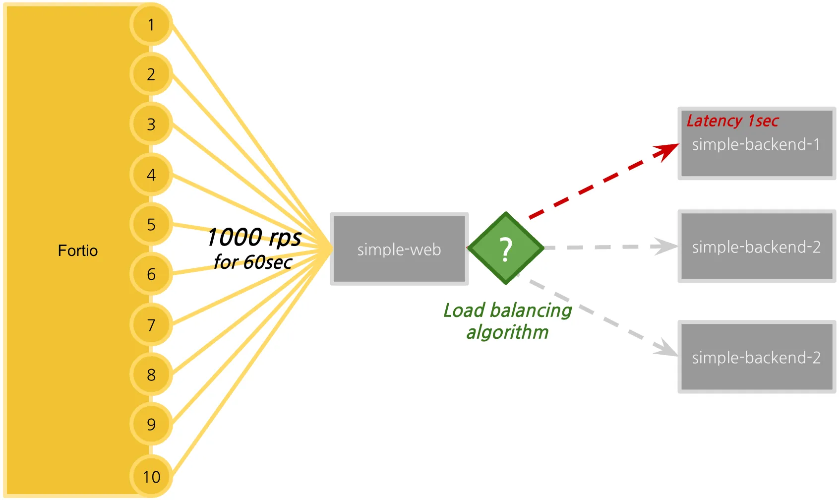 maxEjectionPercent: 100 # 로드 밸런싱 풀에서 제거 가능한 호스트 개수(%). 모든 호스트가 오동작하면 어떤 요청도 통과 못함(회로가 열린 것과 같다). 기본값 10%