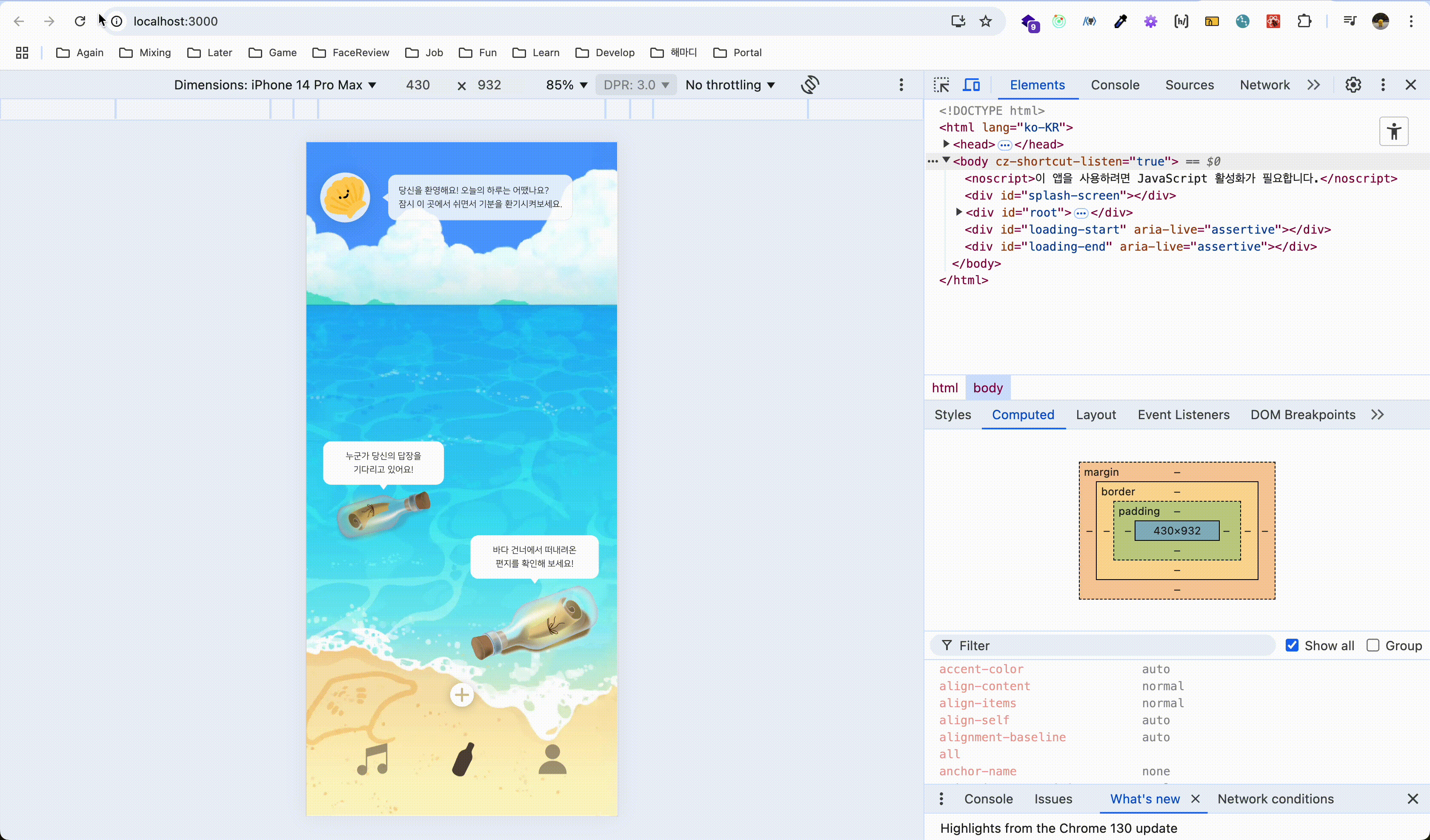 아래의 gif를 보면, 앱 실행 시 splash-screen 요소가 렌더링되고 사라지면서 HTML 요소도 함께 변경되는 것을 볼 수 있다.