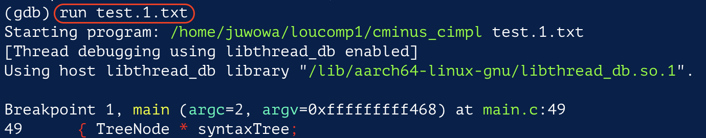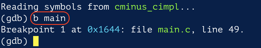 명령어를 통해 gdb 로 실행파일을 실행시킨다.