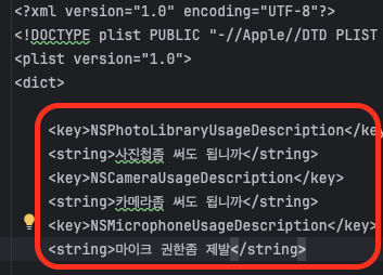 <key>NSCameraUsageDescription</key>